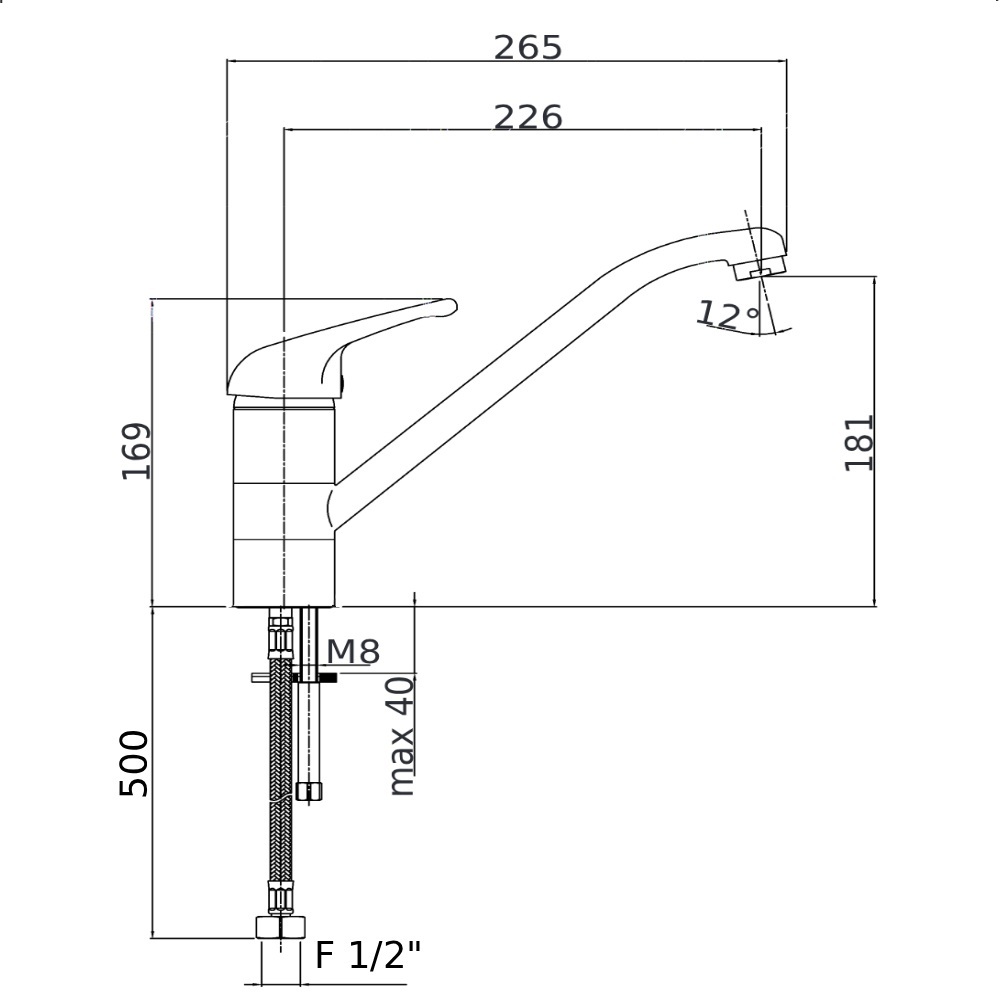Misturador Monocomando 256 Cozinha Luxo Mesa 1/2